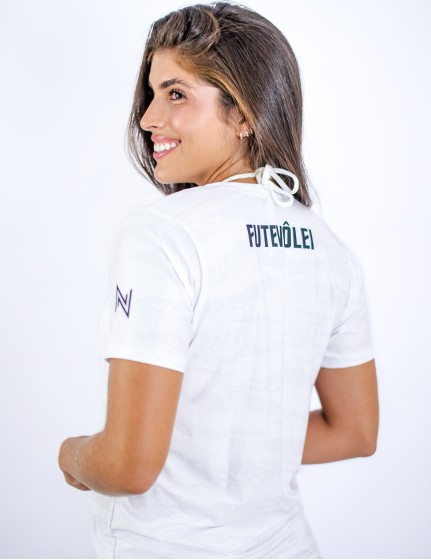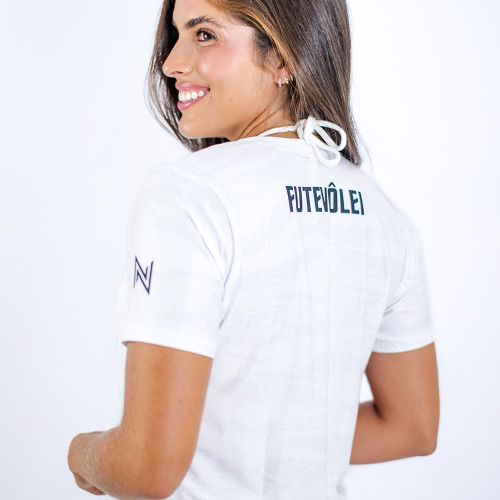 Camiseta Manga Curta Branca UV Feminina N.Sports: Estilo e Proteção Essenciais para Jogadoras de Futvôlei Profissionais