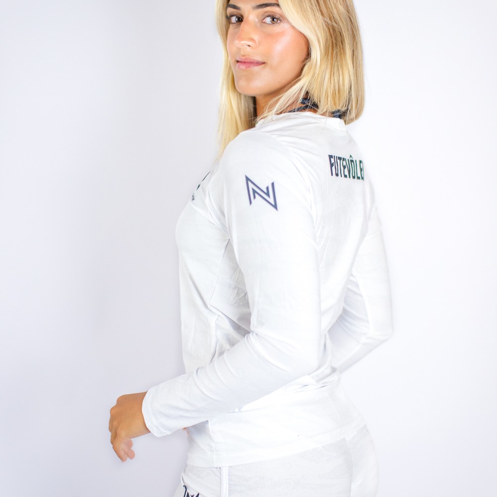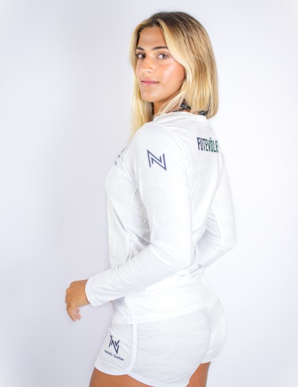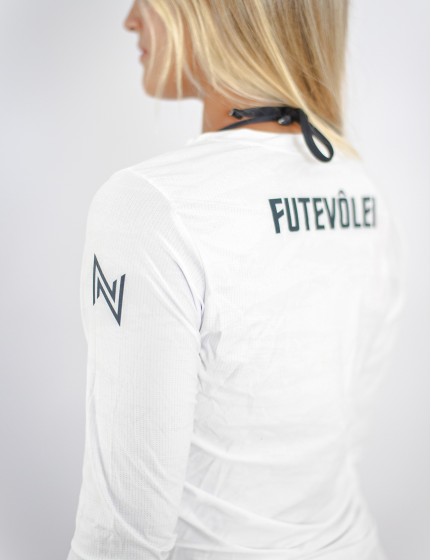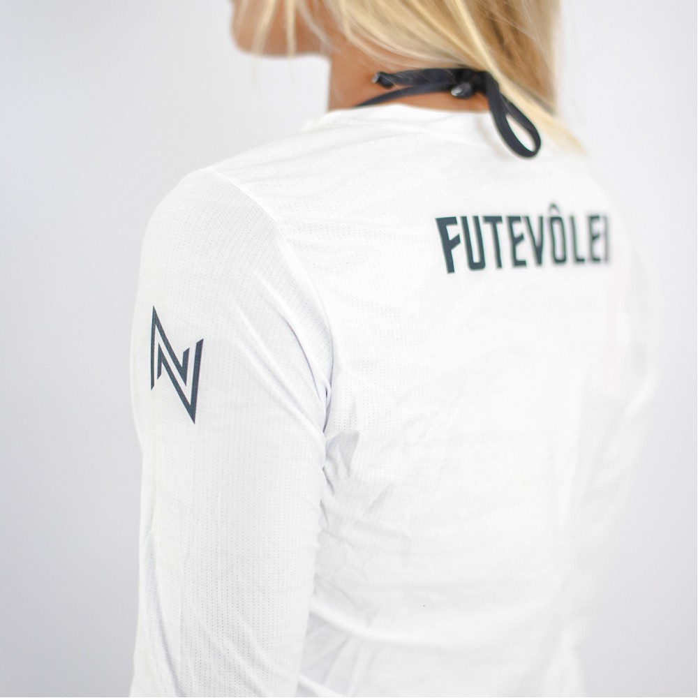 Camiseta Manga Longa Branca UV Feminina N.Sports: Estilo e Proteção Essenciais para Jogadoras de Futvôlei Profissionais