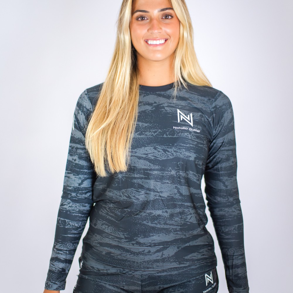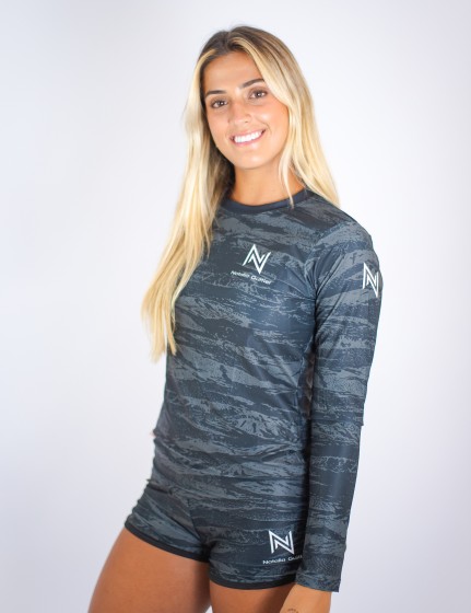 Camiseta Manga Longa Preta UV Feminina N.Sports: Estilo e Proteção Essenciais para Jogadoras de Futvôlei Profissionais